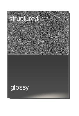 An excellent example of the difference between color and appearance is demonstrated in the figure below, where a glossy dark gray piece of plastic has had the upper half textured (labeled “structured”). The color (the physics of light striking pigments) is the same on both samples, but the appearance reveals a notable difference.
